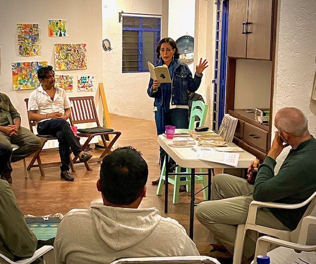 Araceli Mancilla Zayas reading in the gallery space, Centro Cultural Liliana Loth